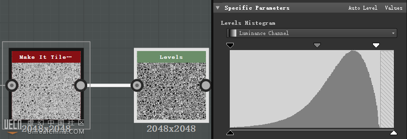 随后使用与PS中同名的Level节点调整色阶。作为最终的高度图。