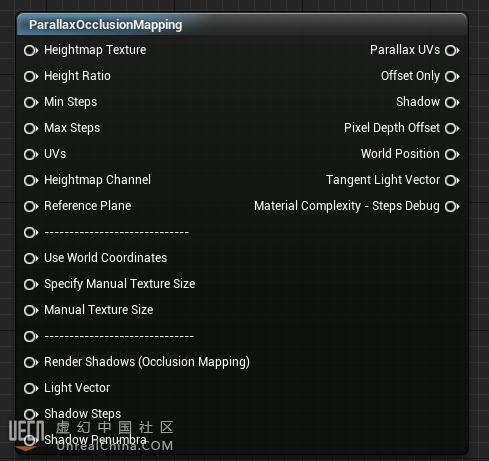 新建材质球,调出Parallax Occlusion Mapping节点。