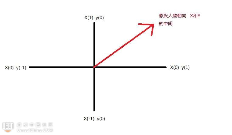 如果人物朝向是X跟Y的中间的话,却输出 X=0.707 Y=0.707 Z=0 , X和Y不应该都是 0.5吗? 为什么会这样