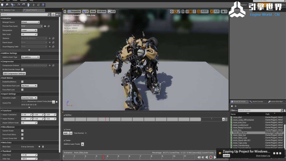 所有功能都是在UE4蓝图来实现,变形金刚是标准骨骼系统biped绑定的,可以加载自己的.bip动画预设文件
